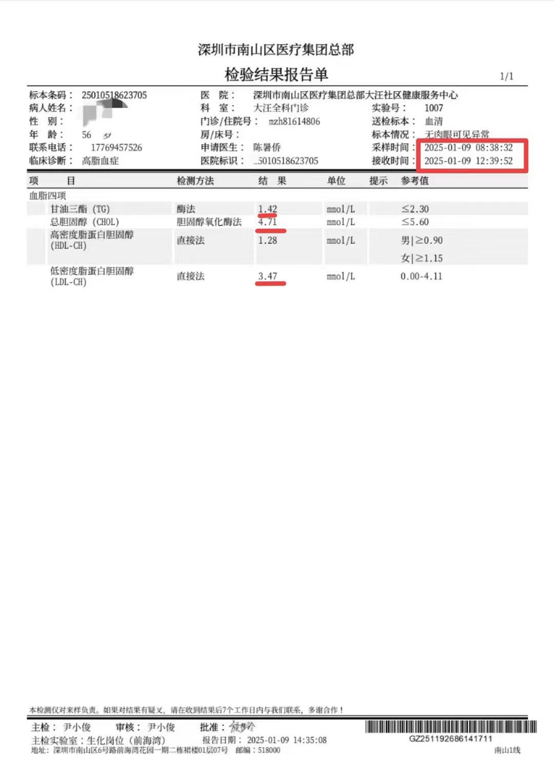 56岁的姐姐,去年10月查出高血脂,经过这3个月的营养调理,血脂正常了