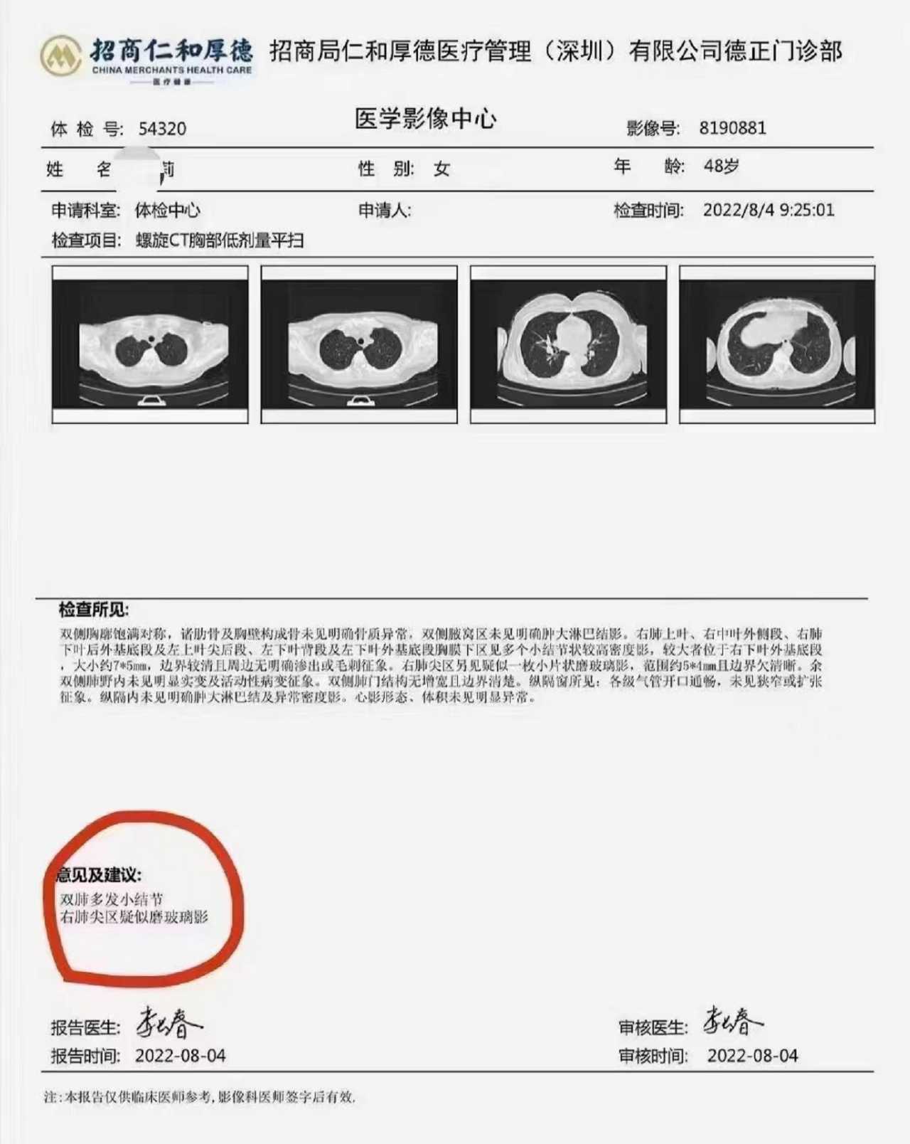 深圳莉姐在2022年8月检查出双肺多发小结节,经过10个月的护肝调理,
