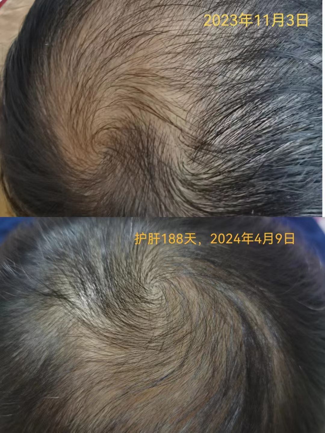 征哥分享:护肝六个月的时间,我的头发也开始好转了,这是不敢想的事情,因为我认识的我爷爷我爸爸,大伯叔叔都是头发掉光了的,太惊喜了。护肝真的太好了